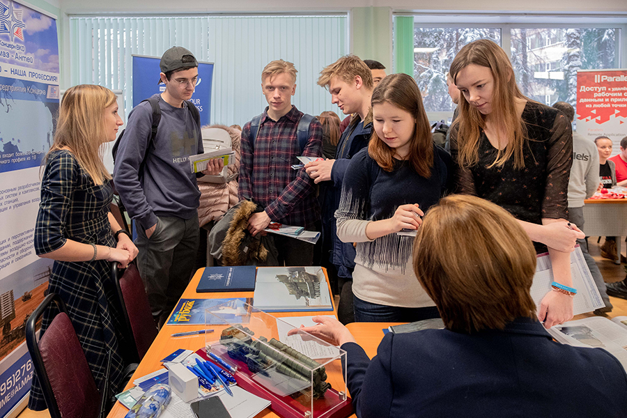 Students were able to communicate with representatives of 68 companies, including the State Corporations Rosatom and Roscosmos, the Ministry of Industry and Trade, enterprises of the military-industrial complex, institutes of the Academy of Sciences, enterprises of the Federal Biomedical Agency, as well as such well-known companies as Sberbank, Rosbank, Aeroflot, Mail.ru and others.