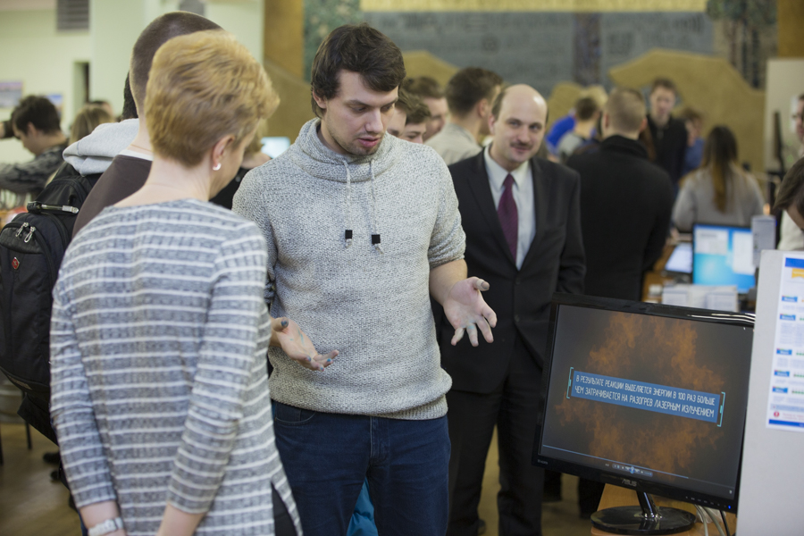 Talking with the guys who gathered in the auditorium in anticipation of a meeting with representatives of the University, we found that most of them had already known what areas of training the University offers, and some even had choosen their future specialty. Basically it was, of course, students of the MEPhI Pre-university, Moscow engineering classes as well as those who participated in numerous contests and competitions, which are annually held in our University. That day MEPhI provided an opportunity to confirm their choice once again, but for those who are at a crossroads – to get acquainted with the educational programs, communicate with heads of Departments, lecturers and students, to visit the science labs.