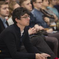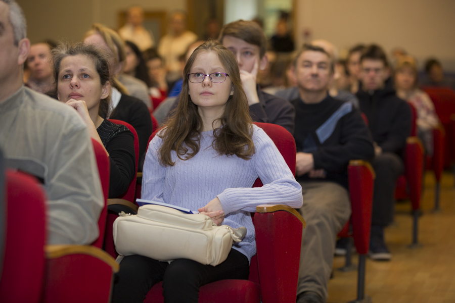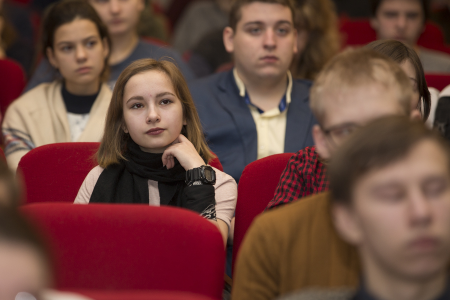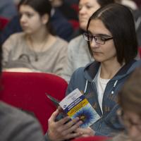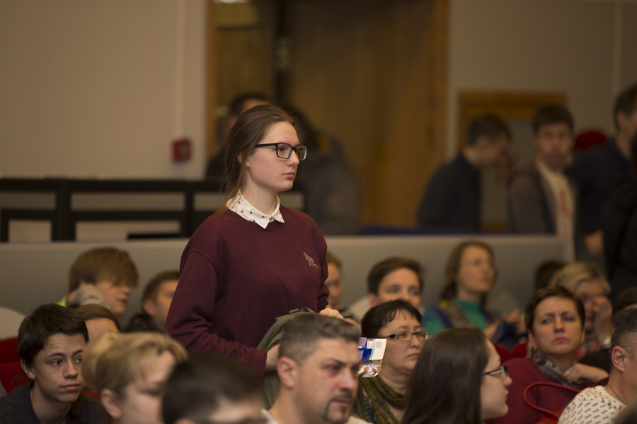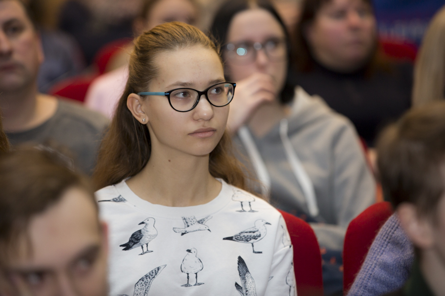 Ekaterina Kononova, 11th grade: "I'm studying at physics and mathematics class. It’s not my first Open Day in MEPhI. I like the speakers as they tell captivating stories about the University. I’ve heard that the passing scores increased, but I think I will manage to pass".