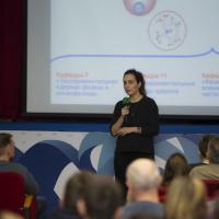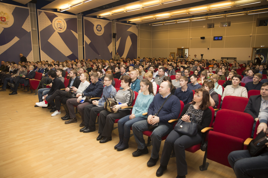 Then the Executive Secretary of the Admission commission of MEPhI V.I. Skrytniy told about the features of training and the admission rules of this year. The average pass rate grows every year, last year it was 90.5 points. Among the applicants in MEPhI there are a lot of guys that have a certificate with honors – 45%, as well as winners of various competitions – 37%.