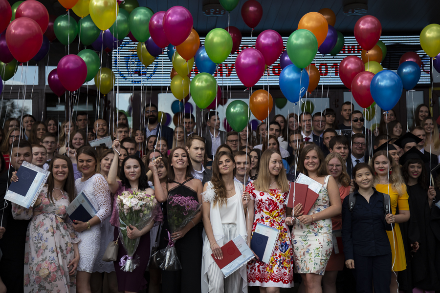 After the solemn presentation, the happy graduates made memorable photos and released colorful balloons into the sky. The program of the event was very rich, it lasted from ten in the morning until the evening. Graduates and guests of the University were also offered to send a "time capsule": to record a video message for themselves of the future, write a contact email, where the message will be sent and the desired date of receipt. The whole day the photo zone was working, and Kiki robot, which did not leave anyone indifferent, was running along the hall of the third floor. At the end of the ceremony, the presenter announced that all graduates of MEPhI, who have applied for the master's degree, could participate in the lottery: three tours to Sochi were raffled off!