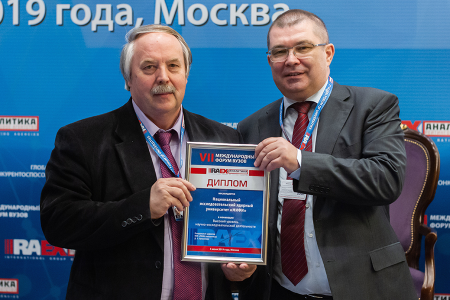 The universities’ forum "Global competitiveness" included an award ceremony on the results of the eighth ranking of the best universities in Russia. The National Research Nuclear University MEPhI was awarded in the nomination "High level of research activities".