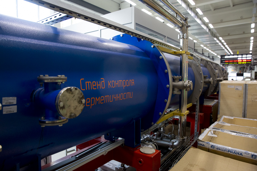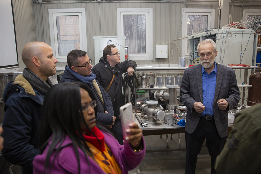 The head of the Interdepartmental laboratory of experimental nuclear physics A.I. Bolozdynya acquainted the visitors with the experimental setup RED-100, which is being prepared to be placed at the Kalinin NPP to study the effect of coherent neutrino scattering on heavy nuclei discovered in 2017. The experiment will investigate the coherent scattering of electron antineutrinos emitted by an energy nuclear reactor. The project is supported by the Russian Science Foundation (grant № 18-12-00135).