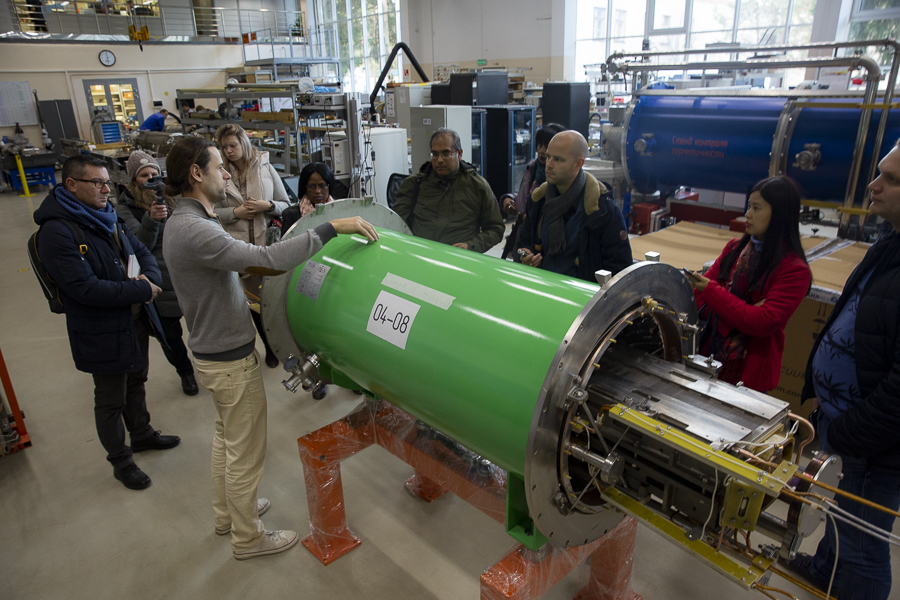 On the second day of the press tour, the journalists went to the Joint Institute for Nuclear Research (JINR, Dubna), where they had excursions to the site of the future NICA accelerator and the superconducting magnets factory.